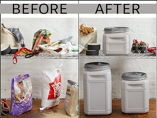 Built to Last - Built with Mighty Tuff quality materials, this pet food storage container is a durable, all-purpose storage option. Indoor or outdoor, it is fit for any season and guaranteed to remain rust, water, damage and corrosion-proof. Hassel-Free Scoop – Our pet food storage containers include a scoop with markings at ½ and 1 cup. Easily insert the measured scoop into your container for quick accurate measured contents with no mess. Airtight Seal - The easy twist-off lid is designed to preserve the freshness of your pet’s treats or feed. The durable quality of this container also helps with odor control, and keeps moisture, humidity, and pests from entering the container. Versatile Use - This container is BPA free and made with food grade material for storing livestock feed, pet food and treats, sand, salt, or pet litter. Not only for pets, you can also use this container as a toy bin, dry and bulk food organization and more. Easy to Transport - Designed with built in handles to make moving the container from place to place a breeze. Whether for use at home or on the road, easily take your pet food with you wherever you and your furry friends are headed.