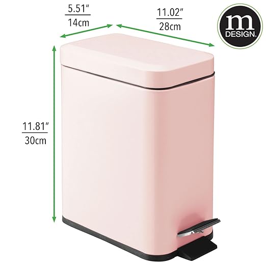 mDesign Small Modern 1.3 Gallon Rectangle Metal Lidded Step Trash Can, Compact Garbage Bin with Removable Liner Bucket and Handle for Bathroom, Kitchen, Craft Room, Office, Garage - Light Pink
