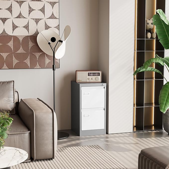 【Quality Material】 This Steel Vertical Filing Cabinet is made from thick, high-strength, cold-rolled solid all-steel materials that guarantee its strength and prevent deformation. It can hold up to 120 pounds of weight, perfect for your printer and scanner. Moreover, the cabinet has a smooth coating treatment on its surface that prevents scratches or marks from appearing on the exterior and makes cleaning effortless. 【Generous Storage】 Metal file cabinets have deep, spacious drawers with hanging bars that can accommodate letter-sized or A4-sized hanging folders, as well as legal-sized ones, to help you keep your files well organized. Every drawer is equipped with smooth, silent metal slides that allow for seamless opening and closing. 【Lockable Storage Cabinets】This storage cabinet is lockable and includes two keys, providing advanced security to keep your valuables and important documents safe from unauthorized access. It is also applicable to various scenes like the office, bedroom or study room, collecting all for a more tidy environment 【Anti-tilt Design】This metal file cabinet has been designed with precision interlock devices and an external ANTI-TILT mechanism. As a result, when one drawer is opened, the interlocking system prevents any other drawer from being opened, ensuring that the cabinet stays upright and keeps you safe. This makes it a safer option compared to other file cabinets. 【Easy to Assemble】Lockable storage cabinets with locks require simple assembly that can be completed in just 30 minutes with the help of our detailed instructions and clearly labeled accessories. If you have any questions or concerns after your purchase, please do not hesitate to contact us directly for the best possible solution.