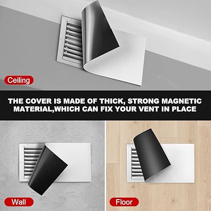 ????【SIZE AND QUANTITY】 We have customized( 8"X 15.5", 2 sheets) magnetic vent covers for you, which is suitable for most air standard register. you can easily cut it into any shape to completely seal the air. Our magnetic ventilation covers are versatile, ideal for indoor or outdoor HVAC and RV use. ????【HIGH QUALITY】We magnetic vent cover use high-quality anisotropic rubber magnet materials, Our air vent covers have stronger magnetism compared to regular rubber magnets, providing better sealing and preventing them from falling off. The other side with matte white PVC surface that is not easily scratched and is waterproof, which can effectively conceal the ventilation openings. ????【EASY TO USE】 Our magnetic vent covers for wall are highly flexible and easy to cut. you could effortlessly shape them to any desired size or form, then use magnet vent cover to directly adsorb onto iron vent and completely cover it. Suitable thickness and magnetism can easily adsorb and remove. Please verify with a magnet that your vents are iron and not stainless steel, aluminum, wood or plastic. ????【MULTIPURPOSE&MULTIFUNCTION】 With these ceiling vent covers, effectively help you redirecting air and also significantly reduce the heating and air conditioning costs associated with controlling the temperature in these spaces. This floor register vent covers will keep small living creature climbing out of vent, also prevents small items such as coins from falling into the vents. ????【HIGH QUALITY AFTER-SALE SERVICE】 Our Thaibear team dedicated to provide our customers with the highest quality magnet products and the best customer service. If not completely satisfied with our magnetic vent covers for home floor, please contact us and we will do our best to meet you.
