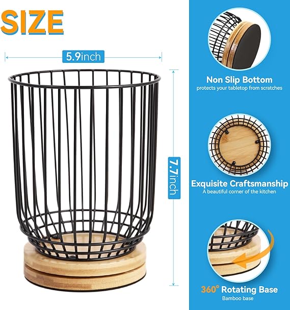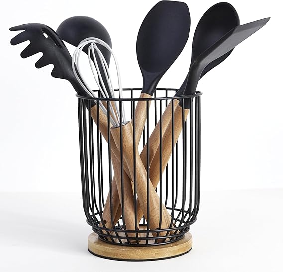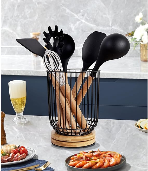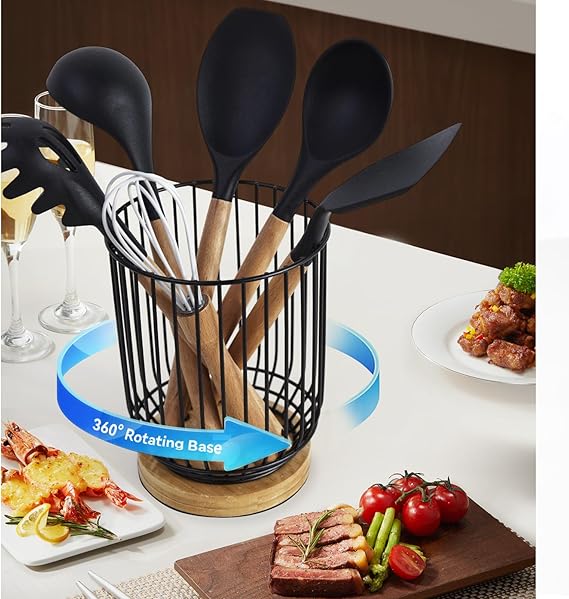 Utensil holder for Kitchen Counter,Large Utensils Holder For Farmhouse Cooking, Utensil Caddy Spatula Holder (Rotating+Metal+Bamboo-1)