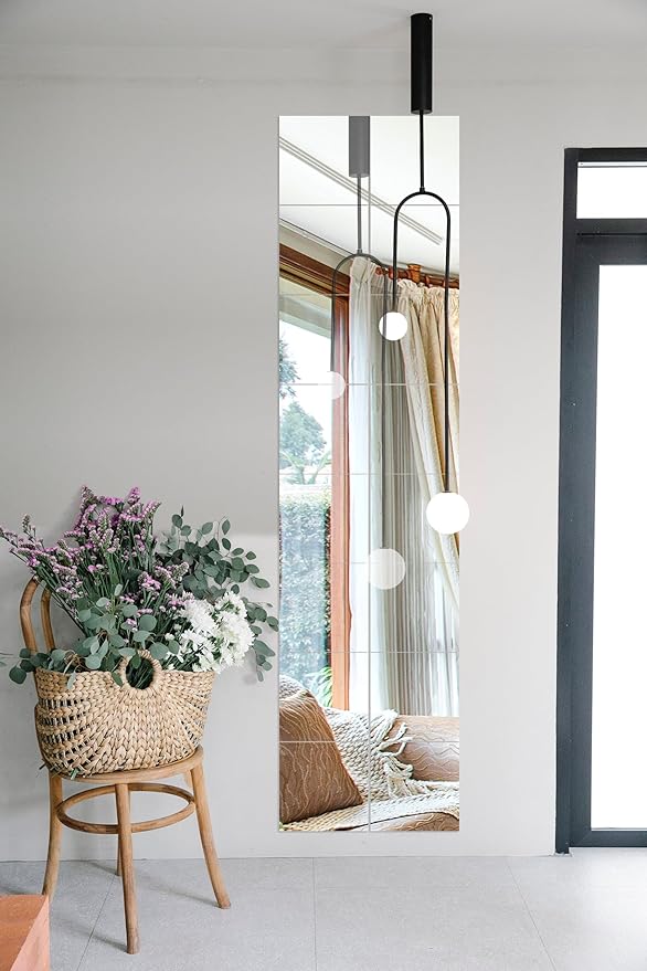 MIRROR SIZE - Set of 16 frameless real glass mirrors, each mirror tile is 12 x 12 inch. Advanced polishing technology makes safe and delicate edges DIY FREE DISPLAY - Perfect as Gym mirror, door mirror, body mirror, dance mirror. Can be combined as you wish, whatever square, rectangle or in other shapes, to make your home more elegant and warm EASY INSTALLATION - Package coming with powerful double sided foam tape. It can be easily installed on smooth walls, latex paint walls, light-hole tiled wall furniture or wooden doors, but not for wallpaper, blistering wall, ash-falling wall, moistured wall, uneven wall. After fixed, do not move at will HIGH-QUALITY - Frameless mirror tiles are made of HD float glass, frosted edge protects well your hands WARM TIPS: These mirror tiles may distort the image if they are mounted on an uneven surface, so please confirm the walls are flat before purchasing. If you need a higher quality fitness mirror, our 24"x48"x2pcs large activity gym mirror may be more suitable for you, which can be used in more scenarios 100% SATISFACTION SERVICE - In case any problem or you are not satisfied, please tell us without hesitation, we will try our best to solve your problem