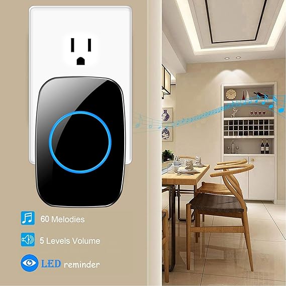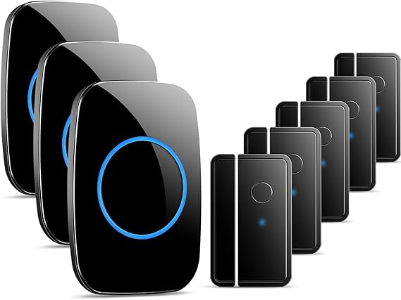 [Out of the Box] This door chime has been paired before delivery. No need for wiring or electrician installation: simply plug the receiver into the socket, and glue the door sensor to the door with the provided double-sided adhesive, and you're ready to go. [Longer Range] Up to 1000 Feet (300m) in the open air from the sensor (150m if there are walls). Cover your house or store, ensures you will never miss a visitor. Include one 23A 12V battery in equipment and design of Ultra-Low-Power, the battery can easily last 1-3 years. [Multiple Features] The door sensor chime is equipped with 60 different chime options and 5-level of volume range from 0dB to 110dB, so you can create a comfortable environment for your family. Silent mode with just LED flash is available when you don't want to be disturbed. [Sensor upgrade] In order to avoid battery consumption during storage and transportation, we added a power button on the sensor, if not used for a long time, please turn off the sensor to extend the battery life. [Distinguish Front and Rear Doors] All receivers will ring no matter which door is opened, but each door has a different tone, so you know where your guests are. If you want the sensor and receiver to work one-to-one, please try the steps in "How to clear the frequency and re-pair".
