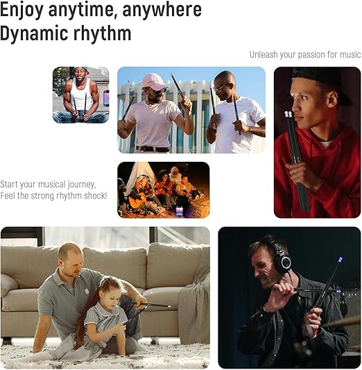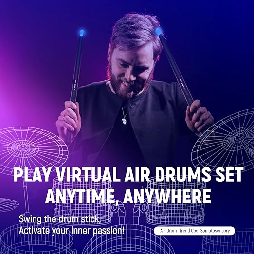 Innovative Experience: Our virtual air drumsticks, coupled with a high-quality Bluetooth speaker, offer an immersive drumming experience anytime, anywhere. Portability and Freedom: Lightweight and portable, you can take your drumming on the go, whether indoors, outdoors, or while traveling. Quality Sound Effects: Enjoy 8 distinct high-definition drum sound effects through the built-in Bluetooth speaker for an authentic and immersive drumming experience. Easy for All Levels: Simple and intuitive, our device is suitable for beginners and experienced drummers alike, making drumming enjoyable for everyone. Private Performances: Use headphones for private practice or share your beats with others through the built-in Bluetooth speaker, enhancing versatility and enjoyment.