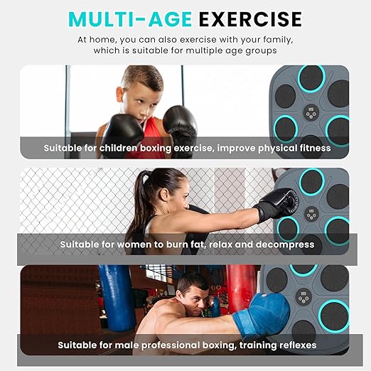 ????【Robust & Long-lasting】: The smart boxing music boxing machine is solid, resilient, compact, transportable, and is designed for wall installation. The cushioning is created from PU leather and foam, providing an elegant surface that's easy to clean and practical. It is designed to safeguard your hands from injuries. ????【Enhanced music wall punching machine】: Presenting our newest USB rechargeable boxing wall mount machine that includes a stylishly designed wall-mounted host that stands out from others, a USB charging cable, and a user guide. Immerse yourself in the thrill of gaming while working out. The boxing pads support connection and features an in-built speaker to play your preferred music via connection. ????【widely applicable】:Our music wall punching machine boasts a wide range of uses, making it the perfect choice for office.workers and students looking to relieve stress. Whether you're a beginner or a professional, this machine is ideal for a range of activities, including boxing, sparring, kickboxing, and Wing Chun training. It's also an essential tool for weight loss, fitness, and shaping, making it an indispensable partner for anyone looking to get in shape. ✨【Easy Installation】This space-saving smart musical boxing machine is designed for wall-mounted, allowing you to exercise anywhere,space-saving and fits on all types of walls, both indoors and outdoors.No longer need you to go to the gym, you can exercise at home at any time。We recommend using Velcro for installation: this process simply adheres the double-sided Velcro to the boxing equipment and wall. This method is not only secure and easy to adjust, but also safe for children to enjoy. ????【New Upgrade Music Boxing Machine】The upgraded version of the music boxing machine has a wider range of volume adjustment and clearer sound quality; the striking pads are newly upgraded with silicone material, which greatly improves the resilience and softness. The newly upgraded intelligent chip can adjust the sensitivity of the striking pads. The new upgraded music boxing machine can bring you the best sports experience, and at the same time can also bring excellent audio and visual effects.