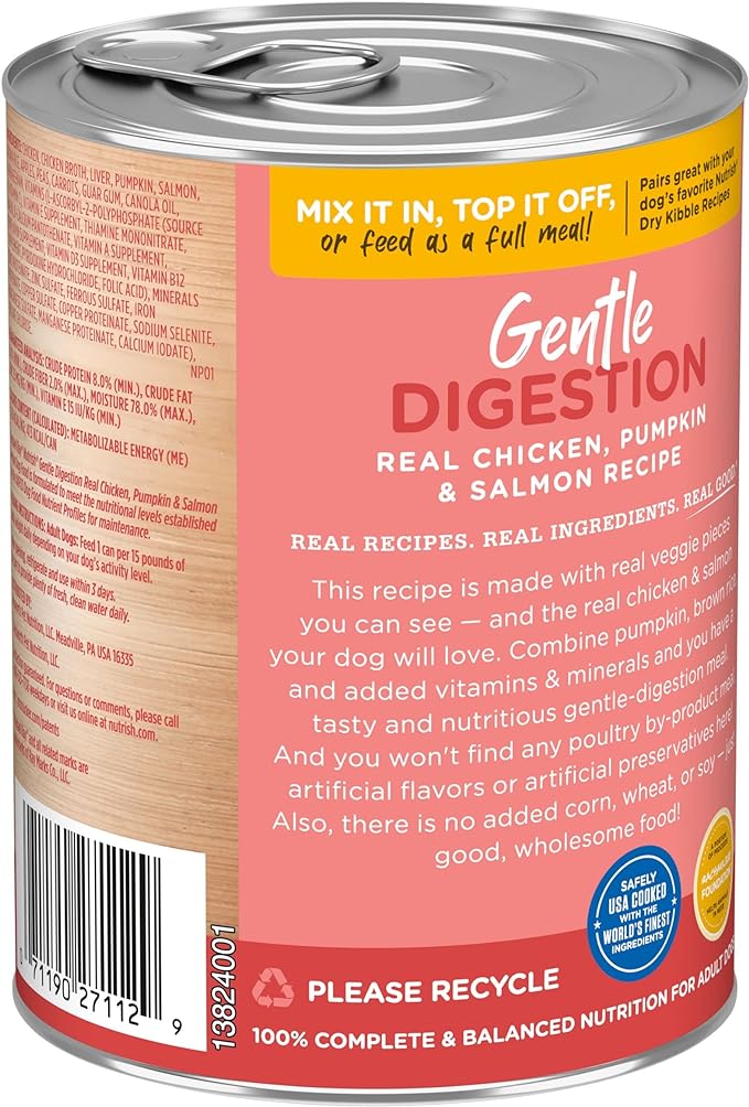 Rachael Ray Nutrish Gentle Digestion Premium Pate Wet Dog Food, Real Chicken, Pumpkin & Salmon, 13 Ounce Can (Pack of 12)