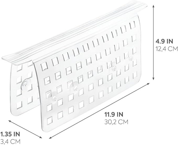 SINK PROTECTORS FOR KITCHEN SINK – Protect your dishes and your sink from damage when washing and drying with the iDesign Kitchen Sink Protector; ideal for use in kitchen, bathroom, and laundry room sinks OPEN DESIGN – The elegant grid design of the plastic sink saddle avoids water from being trapped between the kitchen sink mat and the sink divider wall STAYS IN PLACE – Features sturdy, easy to apply suction cups that stick to the sink wall avoids the sink grid from sliding around DURABLE – Crafted from a strong plastic construction, the sink protector mat is designed to withstand years of use IDEAL SIZE – The kitchen sink grid measures 11” x 12” and fits over most sink dividers