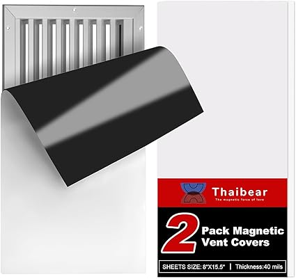 ????【SIZE AND QUANTITY】 We have customized( 8"X 15.5", 2 sheets) magnetic vent covers for you, which is suitable for most air standard register. you can easily cut it into any shape to completely seal the air. Our magnetic ventilation covers are versatile, ideal for indoor or outdoor HVAC and RV use. ????【HIGH QUALITY】We magnetic vent cover use high-quality anisotropic rubber magnet materials, Our air vent covers have stronger magnetism compared to regular rubber magnets, providing better sealing and preventing them from falling off. The other side with matte white PVC surface that is not easily scratched and is waterproof, which can effectively conceal the ventilation openings. ????【EASY TO USE】 Our magnetic vent covers for wall are highly flexible and easy to cut. you could effortlessly shape them to any desired size or form, then use magnet vent cover to directly adsorb onto iron vent and completely cover it. Suitable thickness and magnetism can easily adsorb and remove. Please verify with a magnet that your vents are iron and not stainless steel, aluminum, wood or plastic. ????【MULTIPURPOSE&MULTIFUNCTION】 With these ceiling vent covers, effectively help you redirecting air and also significantly reduce the heating and air conditioning costs associated with controlling the temperature in these spaces. This floor register vent covers will keep small living creature climbing out of vent, also prevents small items such as coins from falling into the vents. ????【HIGH QUALITY AFTER-SALE SERVICE】 Our Thaibear team dedicated to provide our customers with the highest quality magnet products and the best customer service. If not completely satisfied with our magnetic vent covers for home floor, please contact us and we will do our best to meet you.