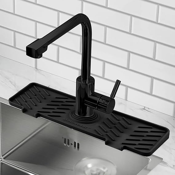 【Slope Improved】 We improved the overall slope, up to 0.3 inches at highest and up to 10°degrees, which means a greater slope, allowing surface water to drain away more easily and always keep your sink & faucet area dry. 【Better Adaptable】Adaptable to multiple sizes, we planned an installation hole from 4cm to 7cm, and it has 360° wrapping to adapt to more diameters faucets and better wrap around your faucet. 【Perfect Organizer】 The areas on both sides of the round hole can be used to store your daily cleaning tools and detergents. You can place brushes, sponges, and detergents on it to keep your countertop tidy. 【Premium Quality】 Made with 100% food grade silicone, our splash guard is better than other fabrics available. It's safe, durable and easy to clean, providing long-lasting use. 【Multiple Uses】This versatile splash guard can be used in various areas of your house, including the kitchen, bathroom, laundry, sink, farmhouse, bar, and RV.